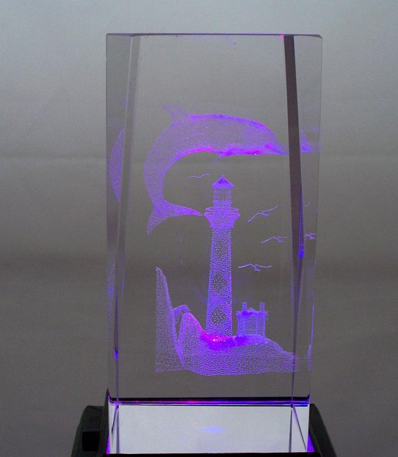 3D Laser Etched Lighthouse and Dolphin Crystal Keepsake Paperweight
